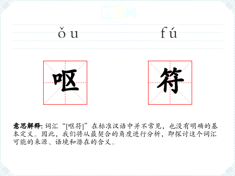 由于“[呕符]”不是一个标准词汇,我们无法提供确切的基本定义。但从字面意思来看,“呕”通常与呕吐有关,表示恶心或不适的感觉,“符”则可能指符号、符咒或某种象征。结合起来,“[呕符]”可能指的是某种与恶心或不适相关的符号或象征。