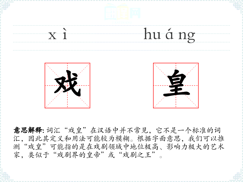 由于“戏皇”不是一个常用词汇,其词源和演变不太明确。可能是由“戏剧”和“**”两个词汇组合而成,用以形容在戏剧领域中的至高地位。