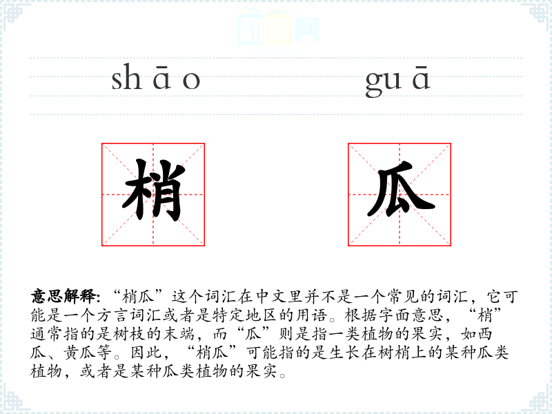 由于“梢瓜”不是一个标准词汇,它的词源可能与某个特定地区的方言或传统有关。随着时间的推移,这个词可能在某些地区逐渐被遗忘,或者被更通用的词汇所替代。