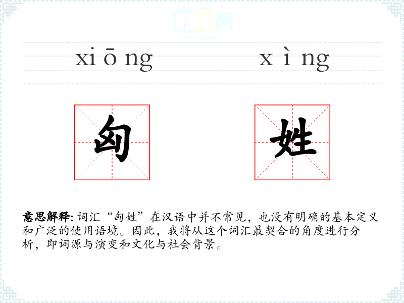 由于“匈姓”并不常见,很难找到明确的同义词和反义词。