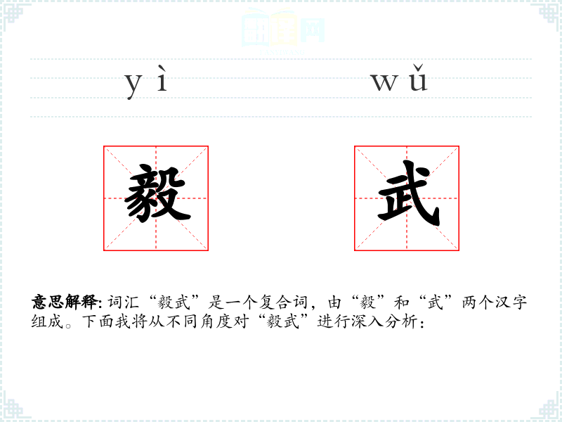 词汇“毅武”是一个复合词,由“毅”和“武”两个汉字组成。下面我将从不同角度对“毅武”进行深入分析: