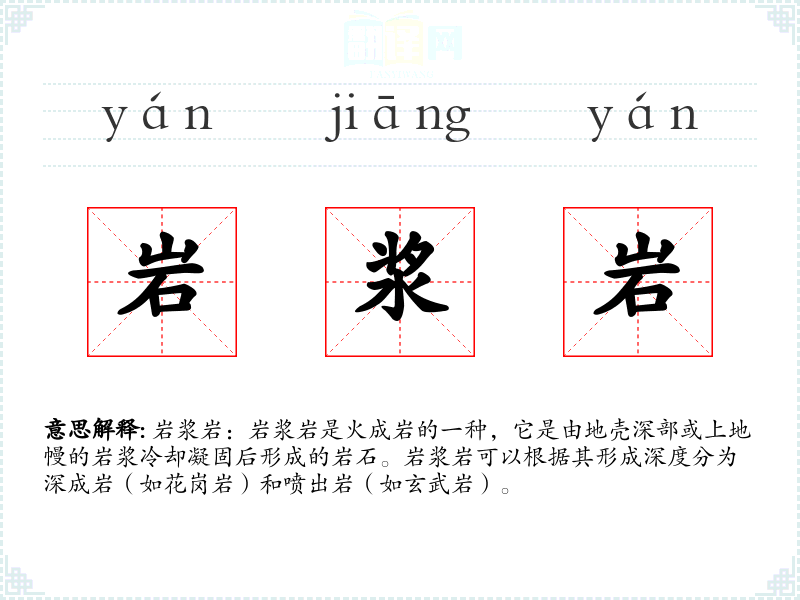 同义词:火成岩、岩浆石 反义词:沉积岩、变质岩