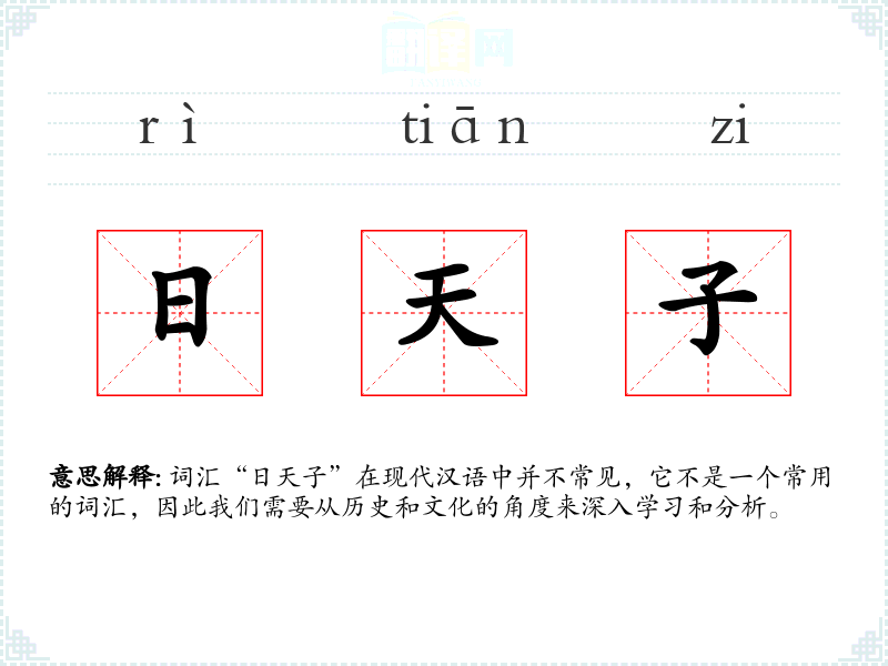 词汇“日天子”在现代汉语中并不常见,它不是一个常用的词汇,因此我们需要从历史和文化的角度来深入学*和分析。