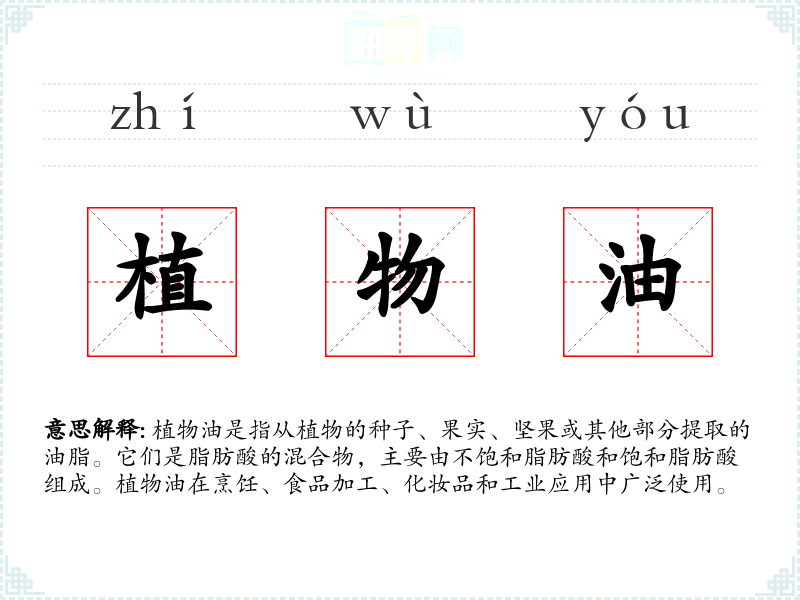 "植物油"的意思解释、植物油是什么意思由翻译网汉语词典查词提供。