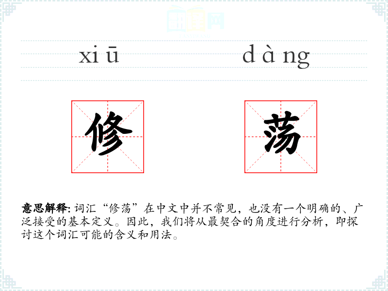 词汇“修荡”在中文中并不常见,也没有一个明确的、广泛接受的基本定义。因此,我们将从最契合的角度进行分析,即探讨这个词汇可能的含义和用法。