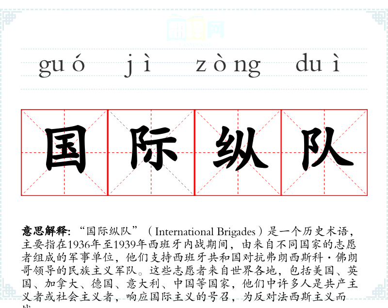 “国际纵队”是一个充满历史意义和情感价值的词汇。它不仅代表了特定历史时期的*,也象征了人类对正义和团结的追求。在语言学和表达中,理解这样的词汇可以帮助我们更好地把握历史脉络和文化背景。