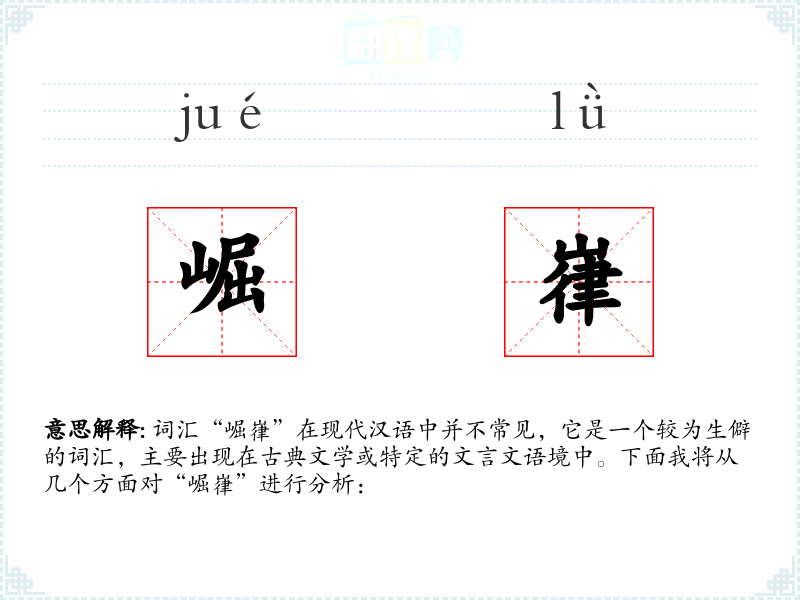 词汇“崛嵂”在现代汉语中并不常见,它是一个较为生僻的词汇,主要出现在古典文学或特定的文言文语境中。下面我将从几个方面对“崛嵂”进行分析:
