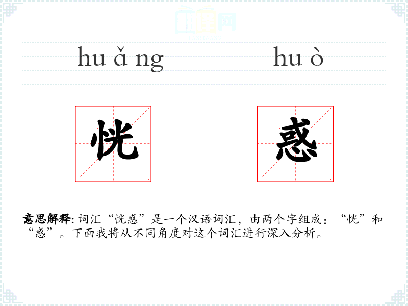 词汇“恍惑”是一个汉语词汇,由两个字组成:“恍”和“惑”。下面我将从不同角度对这个词汇进行深入分析。