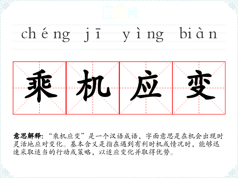 - 口语:在日常口语中,人们可能会用“乘机应变”来形容某人在突发情况下的反应能力,例如:“他在会议上遇到意外问题时,能够乘机应变,迅速提出解决方案。”