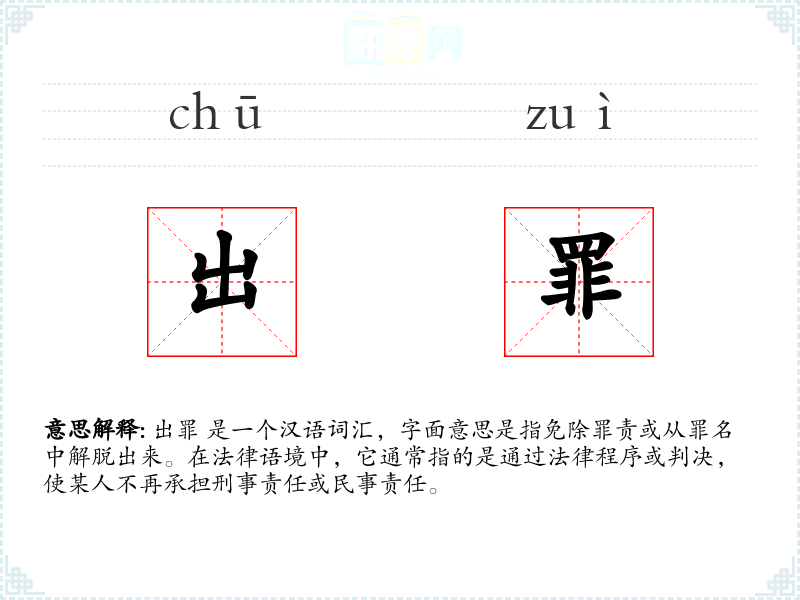 "出罪"的意思解释、出罪是什么意思由翻译网汉语词典查词提供。