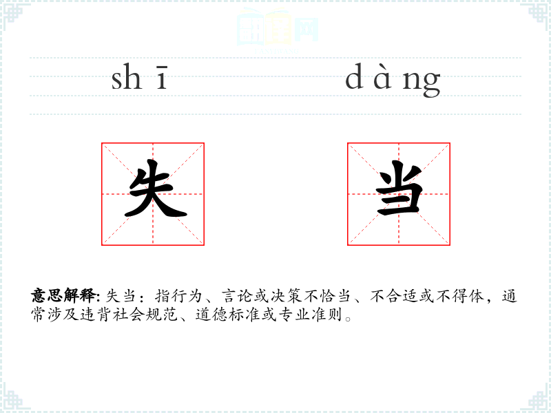 - 专业领域:在法律、医学等专业领域,失当可能指违反了行业规范或伦理标准。