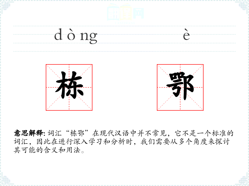 词汇“栋鄂”在现代汉语中并不常见,它不是一个标准的词汇,因此在进行深入学习和分析时,我们需要从多个角度来探讨其可能的含义和用法。