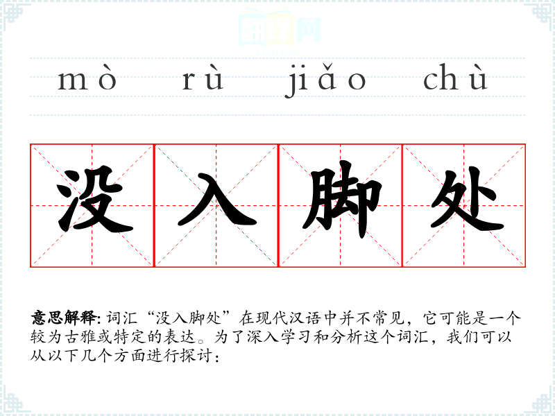 词汇“没入脚处”在现代汉语中并不常见,它可能是一个较为古雅或特定的表达。为了深入学*和分析这个词汇,我们可以从以下几个方面进行探讨: