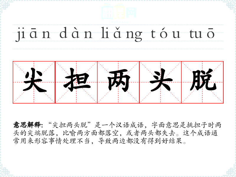 在日常生活中,我曾遇到过因为处理不当而导致两边都不满意的情况,这时“尖担两头脱”这个成语就非常贴切地描述了我的处境。