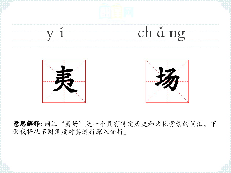 词汇“夷场”是一个具有特定历史和文化背景的词汇,下面我将从不同角度对其进行深入分析。