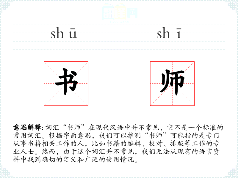 由于“书师”不是一个常用词汇,它在不同语言或文化中的对应词汇及其使用情况不详。