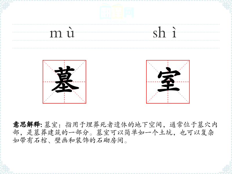 墓室作为一个词汇,不仅代表了死亡和埋葬的物理空间,也承载了丰富的文化、历史和情感意义。在语言学*和表达中,理解和运用这一词汇有助于深化对生命、死亡和文化遗产的认识。