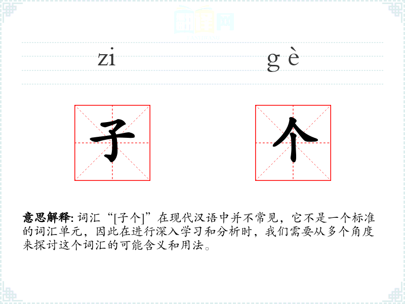 词汇“[子个]”在现代汉语中并不常见,它不是一个标准的词汇单元,因此在进行深入学习和分析时,我们需要从多个角度来探讨这个词汇的可能含义和用法。
