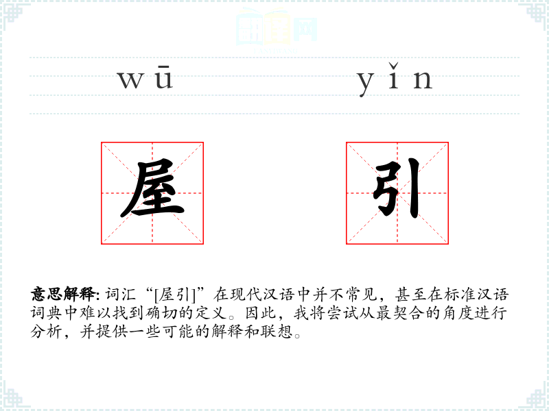词汇“[屋引]”在现代汉语中并不常见,甚至在标准汉语词典中难以找到确切的定义。因此,我将尝试从最契合的角度进行分析,并提供一些可能的解释和联想。