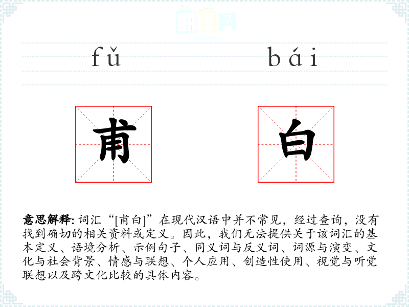 在没有更多信息的情况下,以上分析是基于字面意义的推测。如果“甫白”是一个特定领域的术语、方言词汇或特定文化中的用语,那么可能需要更专业的知识来进行深入分析。