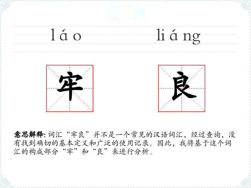 通过对“牢良”这个词汇的分析,我们可以看到,即使是一个不常见的词汇,通过对其构成部分的分析和创造性使用,我们仍然可以理解其潜在的意义,并在适当的场合加以应用。在语言学习和表达中,这种创造性的思维是非常重要的。