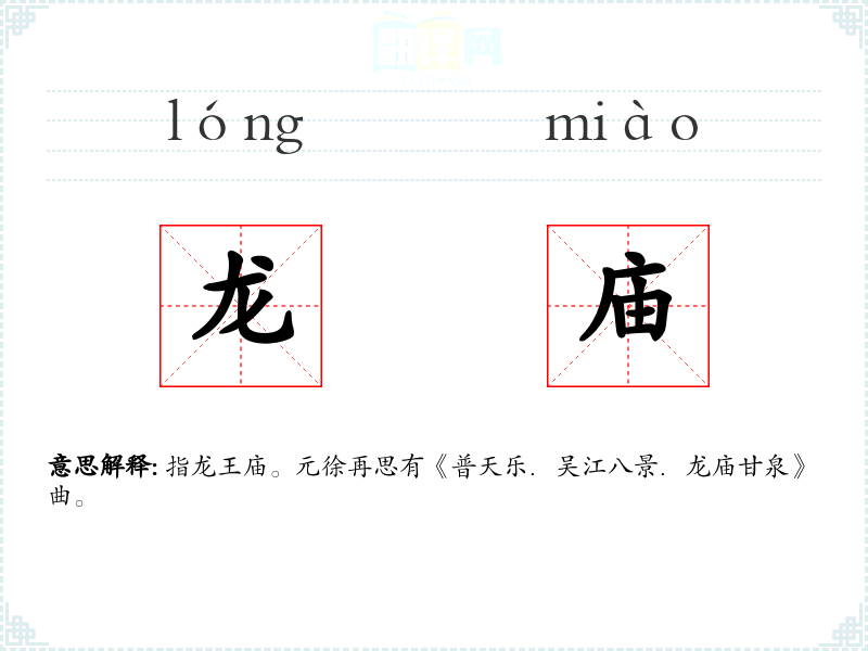 指龙王庙。元徐再思有《普天乐.吴江八景.龙庙甘泉》曲。