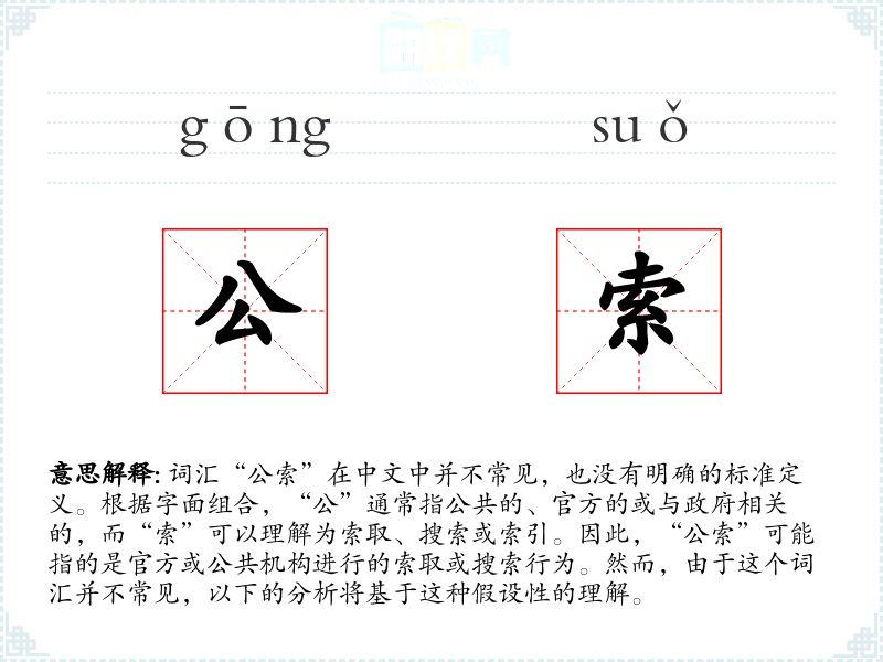 "公索"的意思解释、公索是什么意思由翻译网汉语词典查词提供。