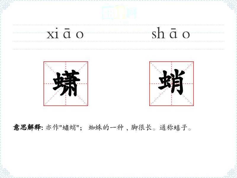 亦作"蟰蛸"; 蜘蛛的一种﹐脚很长。通称蟢子。