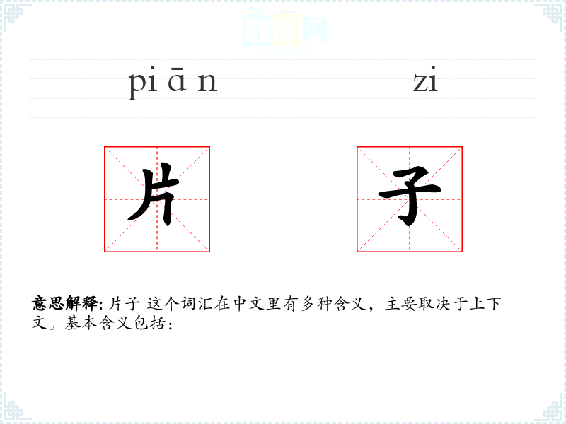 片子 这个词汇在中文里有多种含义,主要取决于上下文。基本含义包括: