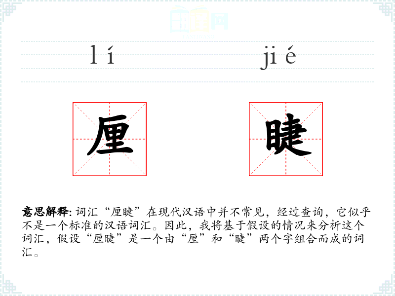 词汇“厘睫”在现代汉语中并不常见,经过查询,它似乎不是一个标准的汉语词汇。因此,我将基于假设的情况来分析这个词汇,假设“厘睫”是一个由“厘”和“睫”两个字组合而成的词汇。