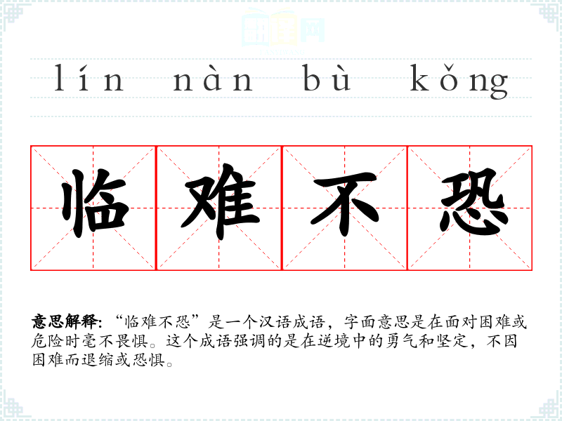 “临难不恐”是一个汉语成语,字面意思是在面对困难或危险时毫不畏惧。这个成语强调的是在逆境中的勇气和坚定,不因困难而退缩或恐惧。