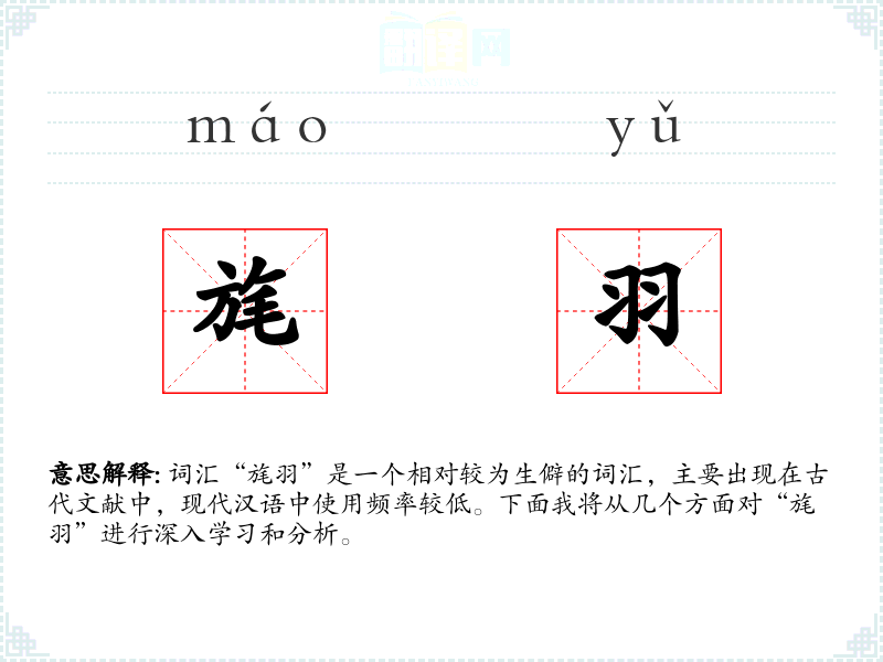 词汇“旄羽”是一个相对较为生僻的词汇,主要出现在古代文献中,现代汉语中使用频率较低。下面我将从几个方面对“旄羽”进行深入学*和分析。