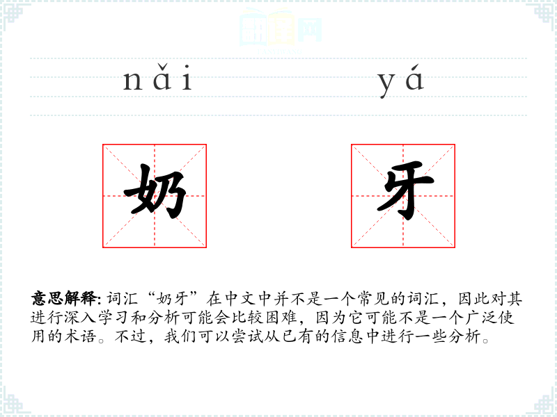 词汇“奶牙”在中文中并不是一个常见的词汇,因此对其进行深入学*和分析可能会比较困难,因为它可能不是一个广泛使用的术语。不过,我们可以尝试从已有的信息中进行一些分析。
