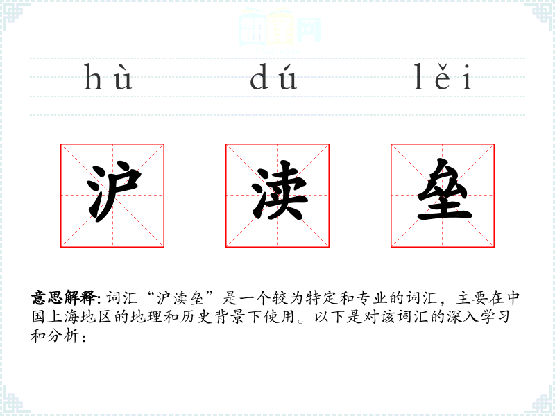 词汇“沪渎垒”是一个较为特定和专业的词汇,主要在*上海地区的地理和历史背景下使用。以下是对该词汇的深入学和分析: