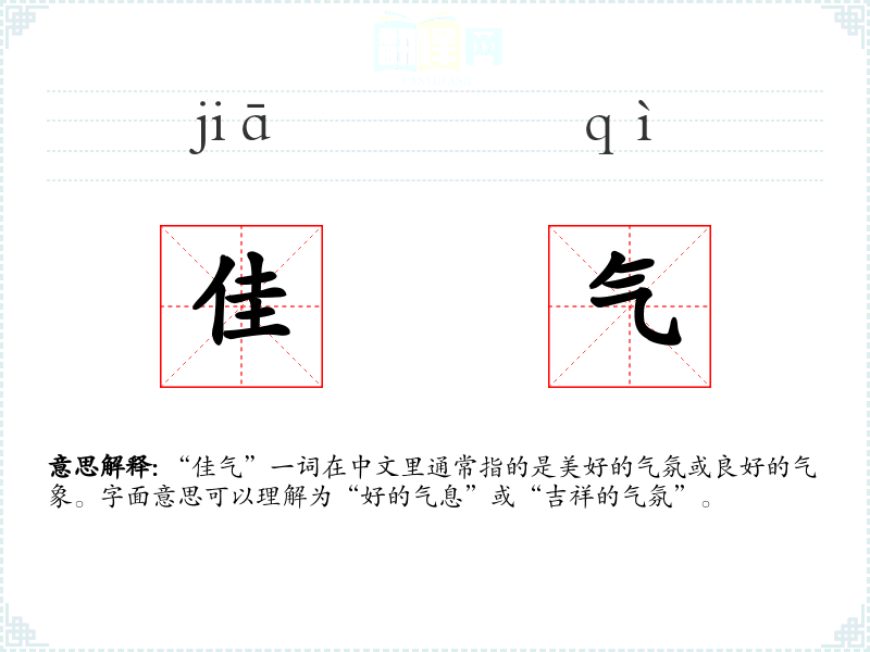 - 专业领域:在气象学或风水学中,“佳气”可能特指吉祥的气象条件或地理位置。