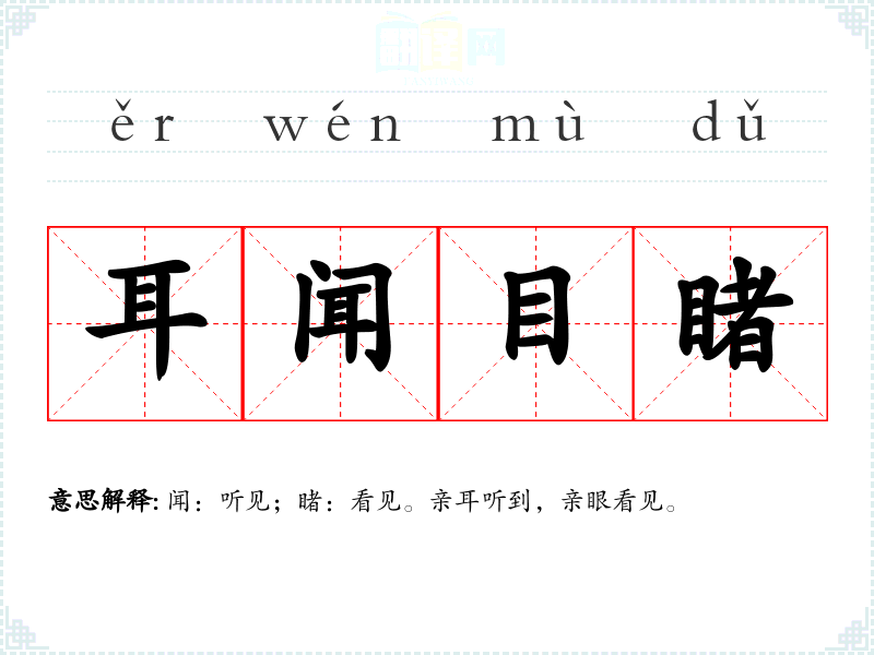 闻:听见;睹:看见。亲耳听到,亲眼看见。