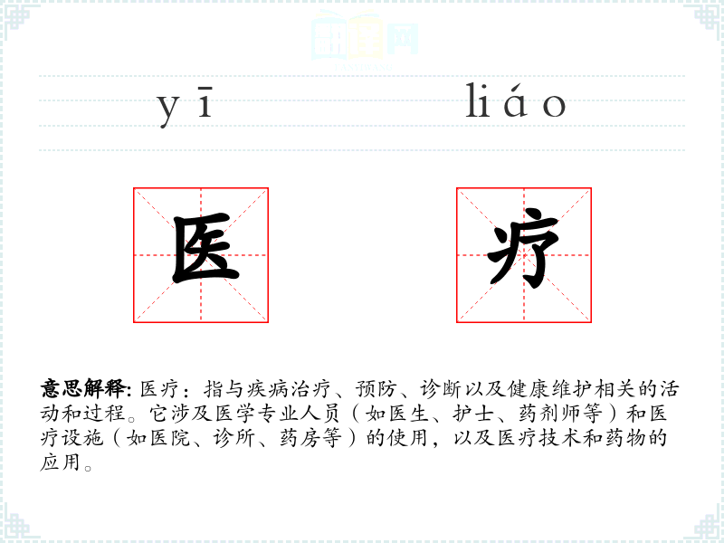 - 专业领域:在医学和健康科学领域,“医疗”是一个核心词汇,用于描述各种专业活动和研究。