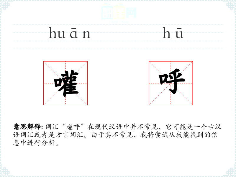 “嚾呼”作为一个不常见的词汇,其理解和应用可能需要更多的文献支持。在语言学*和表达中,了解这样的词汇可以帮助我们更好地理解语言的多样性和历史。