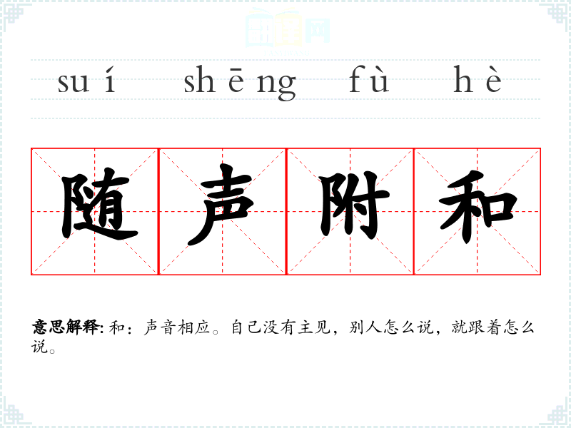 和:声音相应。自己没有主见,别人怎么说,就跟着怎么说。