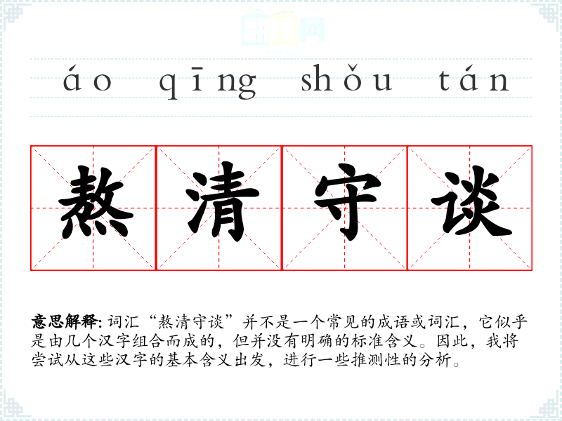 由于“熬清守谈”不是一个标准词汇,它在不同语言或文化中的对应词汇可能需要创造性的翻译和解释。