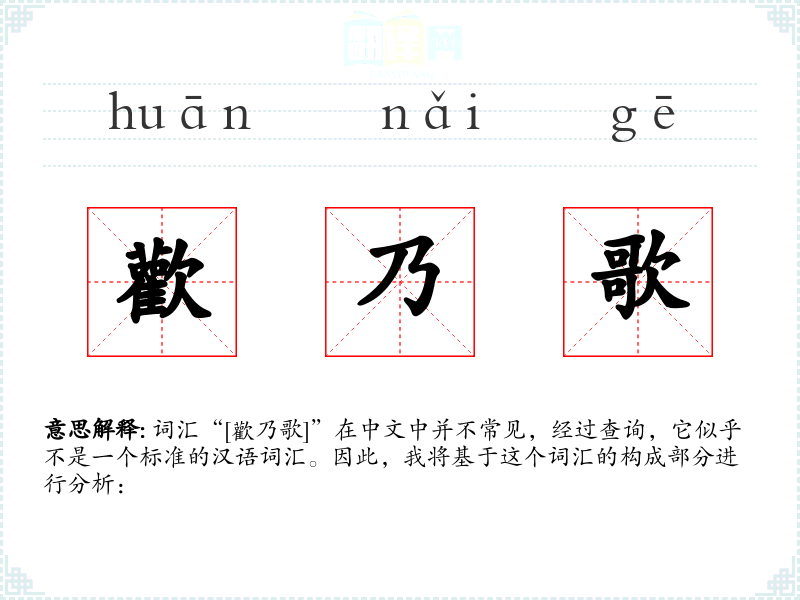 词汇“[歡乃歌]”在中文中并不常见,经过查询,它似乎不是一个标准的汉语词汇。因此,我将基于这个词汇的构成部分进行分析: