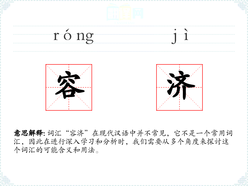 词汇“容济”在现代汉语中并不常见,它不是一个常用词汇,因此在进行深入学*和分析时,我们需要从多个角度来探讨这个词汇的可能含义和用法。