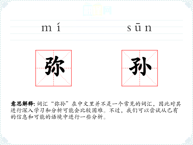 由于“弥孙”不是一个常用词汇,关于它的词源和历史演变的信息非常有限。它可能是某个地区或家族特有的表达方式,随着时间的推移,可能已经不再被广泛使用。