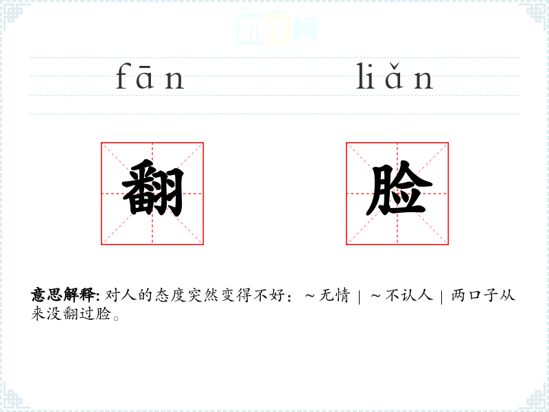 对人的态度突然变得不好:~无情|~不认人|两口子从来没翻过脸。