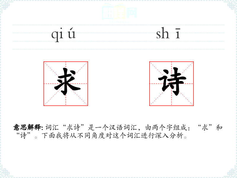 - 反义词:无(因为“求诗”是一个积极的行为,没有直接的反义词)