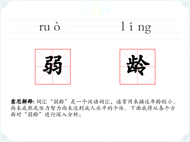 “弱龄”字面意思是指年龄较小的状态,通常用来形容儿童或青少年,强调他们在生理、心理或社会经验上的不成熟。