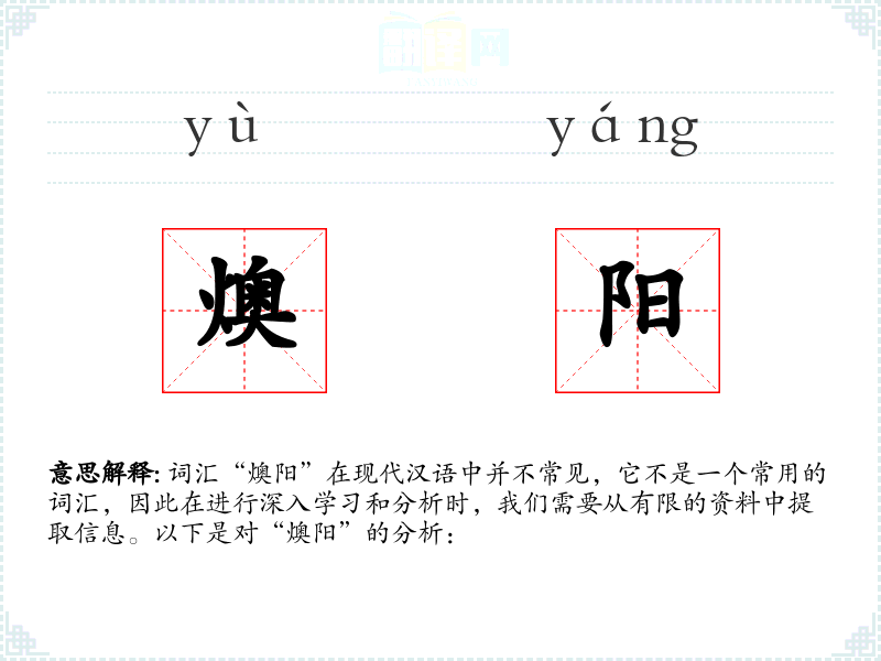 词汇“燠阳”在现代汉语中并不常见,它不是一个常用的词汇,因此在进行深入学*和分析时,我们需要从有限的资料中提取信息。以下是对“燠阳”的分析: