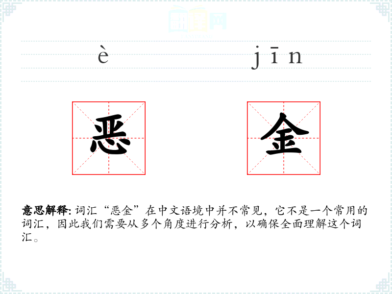 词汇“恶金”在中文语境中并不常见,它不是一个常用的词汇,因此我们需要从多个角度进行分析,以确保全面理解这个词汇。