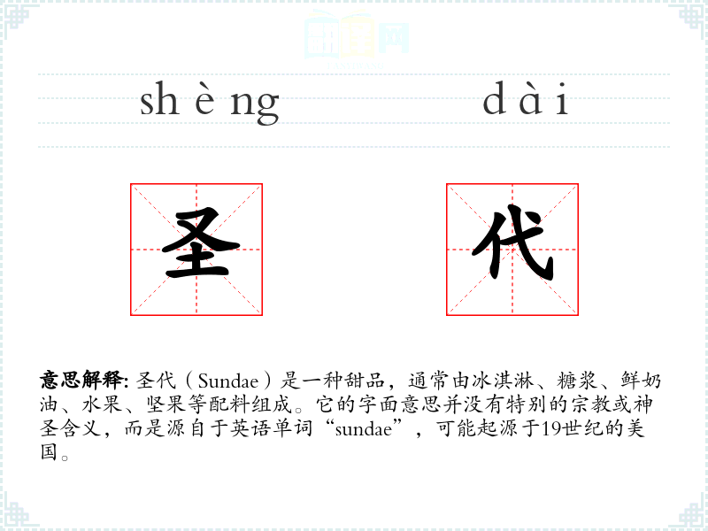 - 专业领域:在餐饮业或甜品制作领域,圣代是一种常见的甜品,有多种不同的配方和风格。