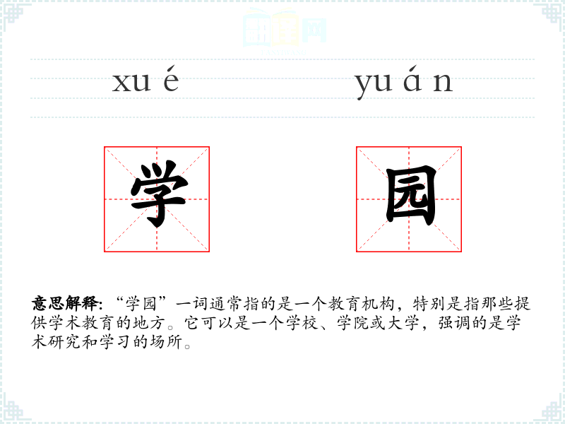 “学园”一词通常指的是一个教育机构,特别是指那些提供学术教育的地方。它可以是一个学校、学院或大学,强调的是学术研究和学习的场所。